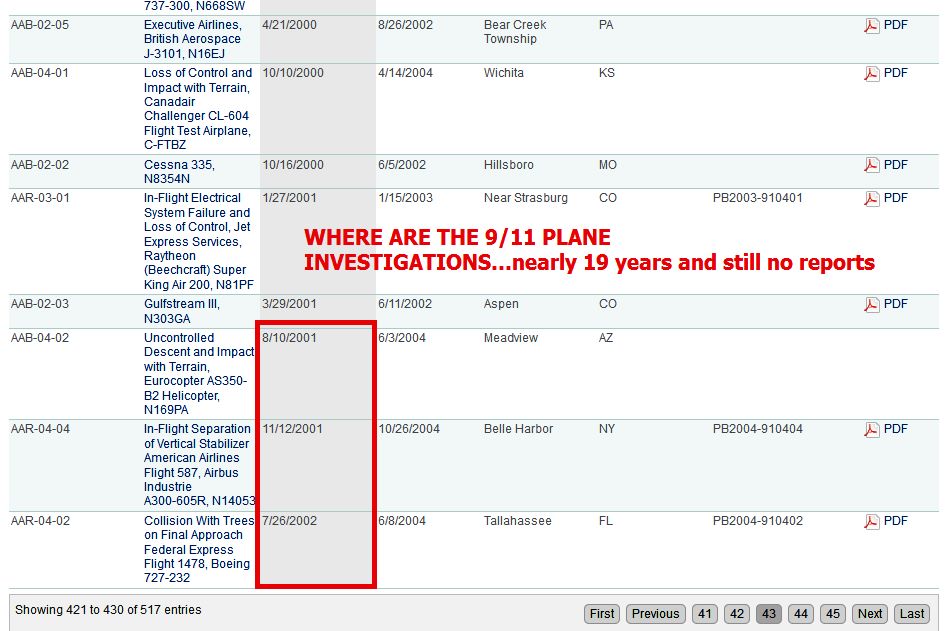 - THERE ARE NO OFFICIAL CRASH INVESTIGATION REPORTS