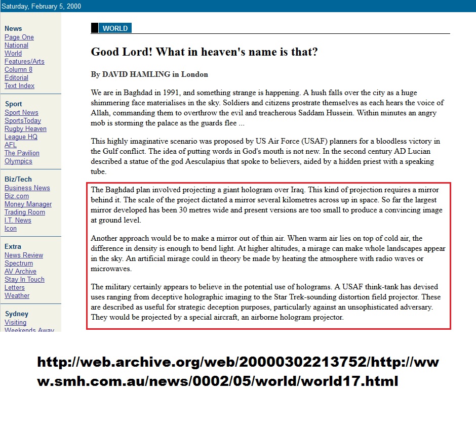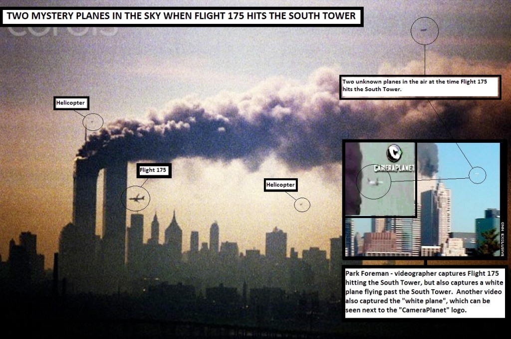 My suggestion to the drone theory flying to the side of Flight 175 would be to ask the question; were those two unidentified “mystery” planes involved in some way deploying some type of “image projection” of a plane, which is why the existence of the two “mystery” planes was never investigated fully or discussed publicly by the 9/11 Commission?
